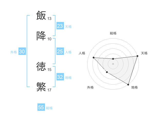 飯降 徳繁さんを姓名の画数から五運を鑑定