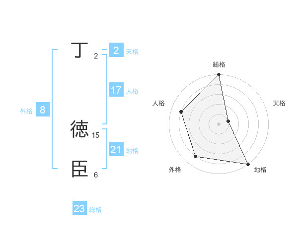 丁 徳臣さんの総格は23画の5点!