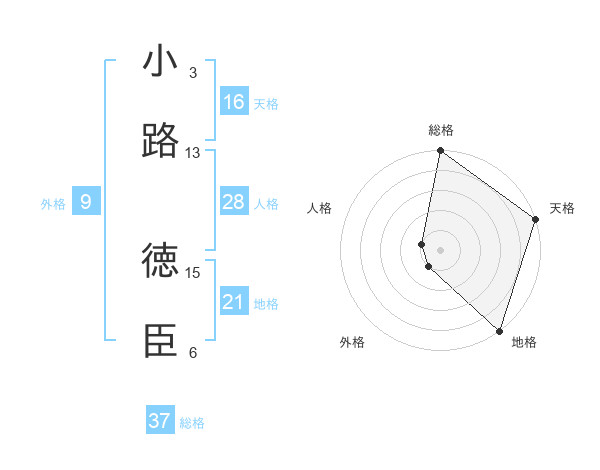 小路 徳臣さんの天格は16画の5点!
