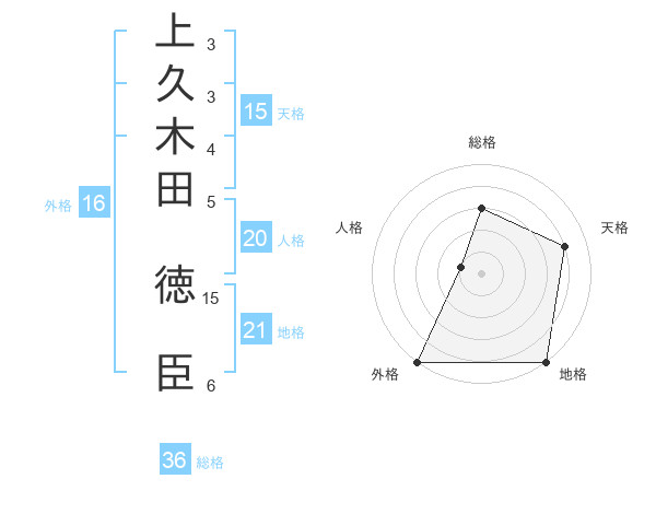 上久木田 徳臣さんを姓名の画数から五運を鑑定