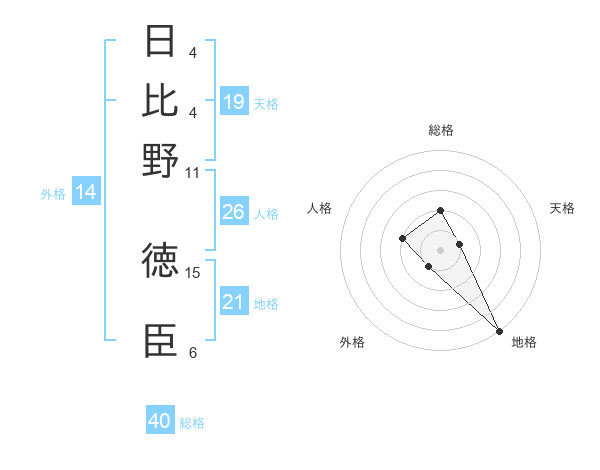 日比野 徳臣さんを姓名の画数から五運を鑑定