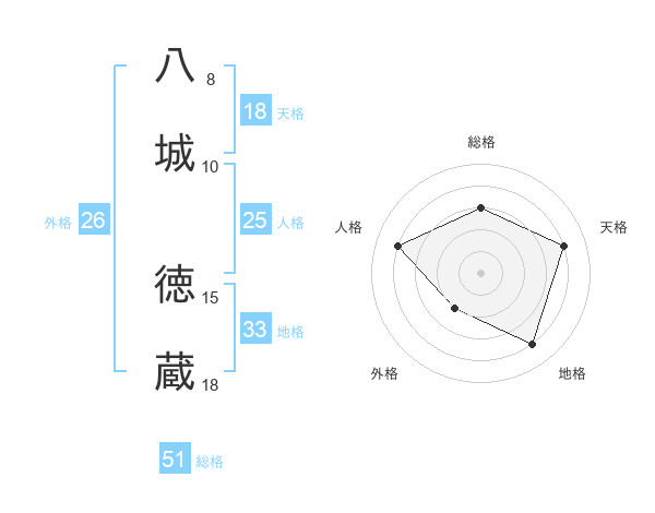 八城 徳蔵さんを姓名の画数から五運を鑑定