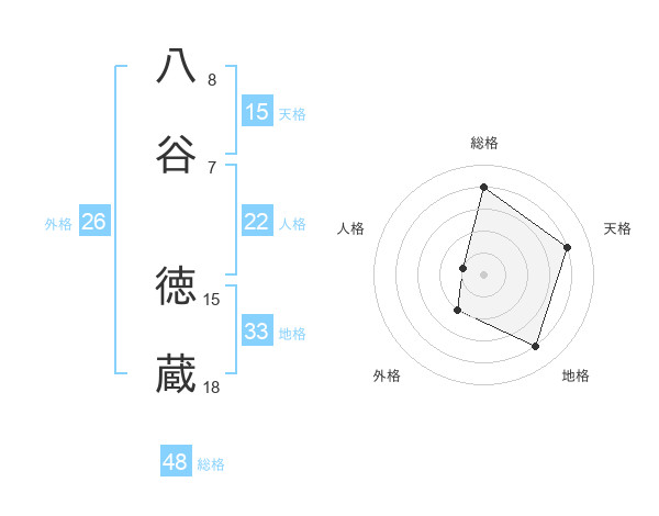 八谷 徳蔵さんの総格は48画の4点!