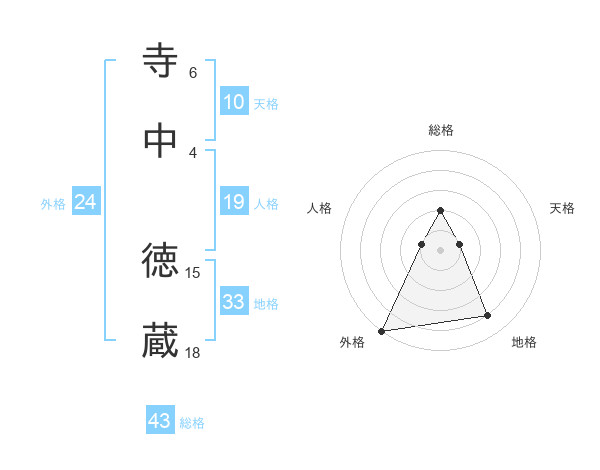 寺中 徳蔵さんを姓名の画数から五運を鑑定