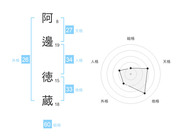 阿邊 徳蔵さんの総格は60画の1点!