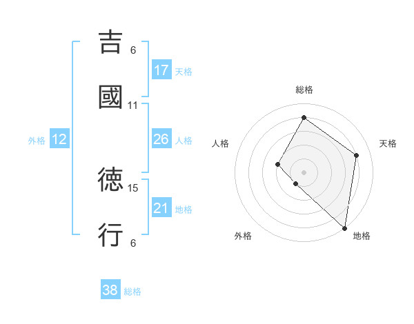 吉國 徳行さんを姓名の画数から五運を鑑定