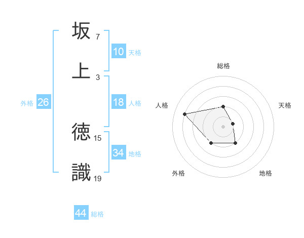 坂上 徳識さんを姓名の画数から五運を鑑定
