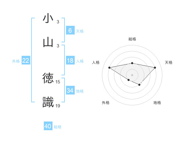 小山 徳識さんの総格は40画の2点!