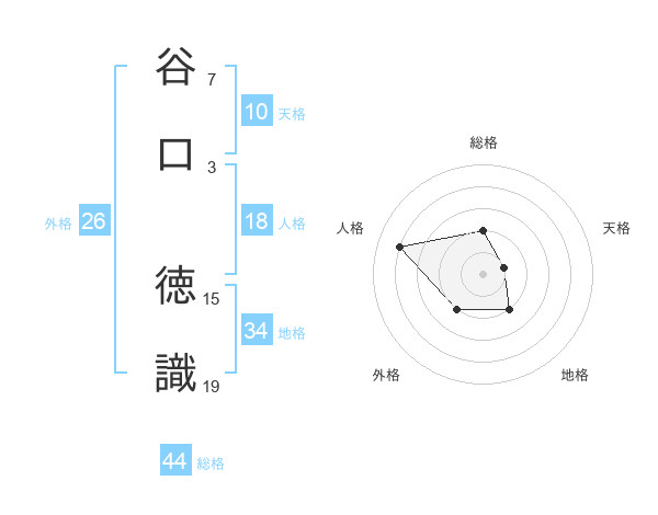 谷口 徳識さんの総格は44画の2点!