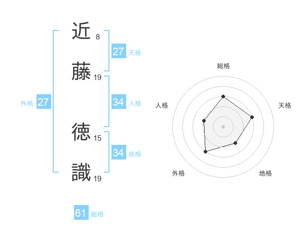 近藤 徳識さんを姓名の画数から五運を鑑定