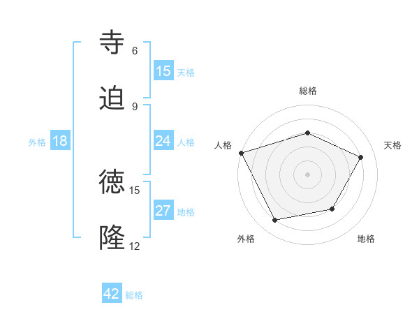 寺迫 徳隆さんの天格は15画の4点!