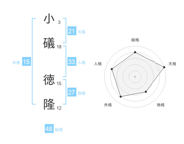 小礒 徳隆さんの天格は21画の5点!