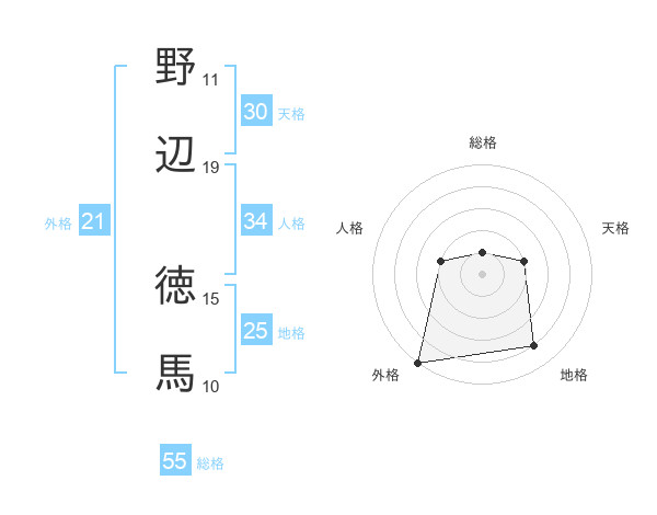 野辺 徳馬さんの総格は55画の1点!