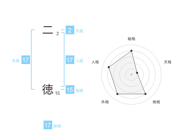 二 徳さんの総格は17画の4点!