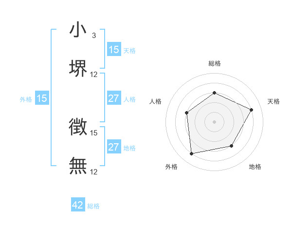 小堺 徴無さんの総格は42画の3点!