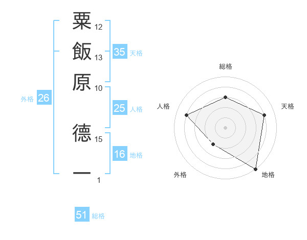 粟飯原 德一さんを姓名の画数から五運を鑑定