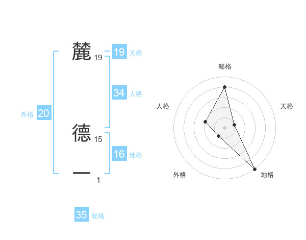 麓 德一さんの天格は19画の1点!