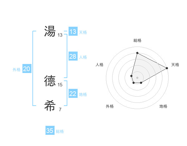 湯 德希さんの総格は35画の4点!