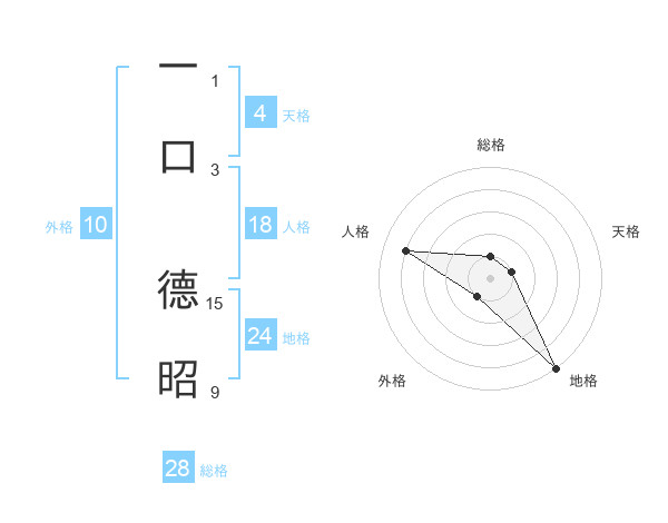 一口 德昭さんの地格は24画の5点!
