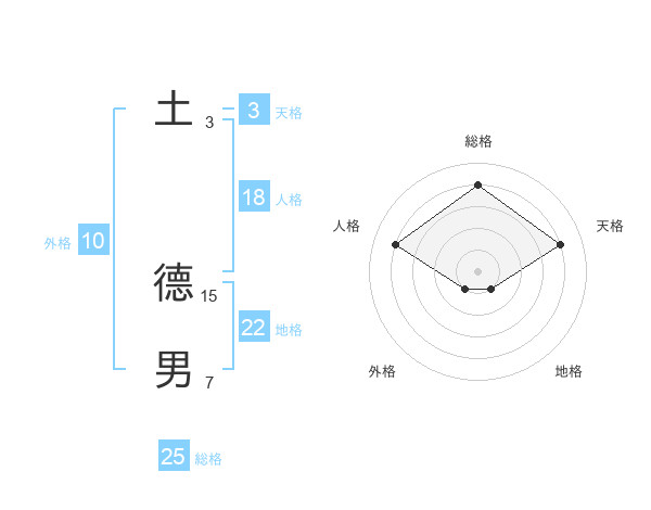 土 德男さんの総格は25画の4点!