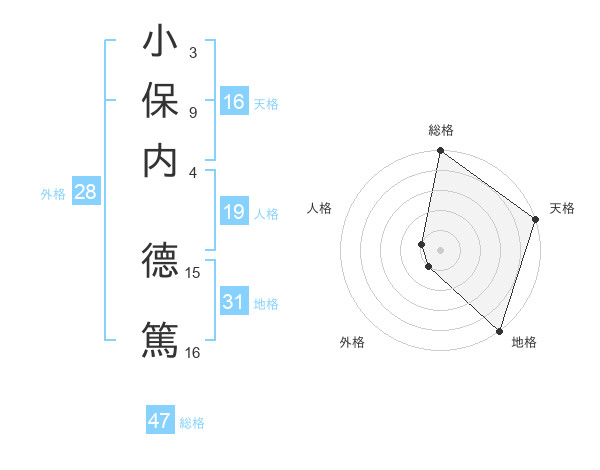 小保内 德篤さんを姓名の画数から五運を鑑定