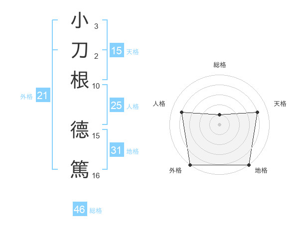小刀根 德篤さんの外格は21画の5点!