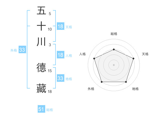 五十川 德藏さんを姓名の画数から五運を鑑定