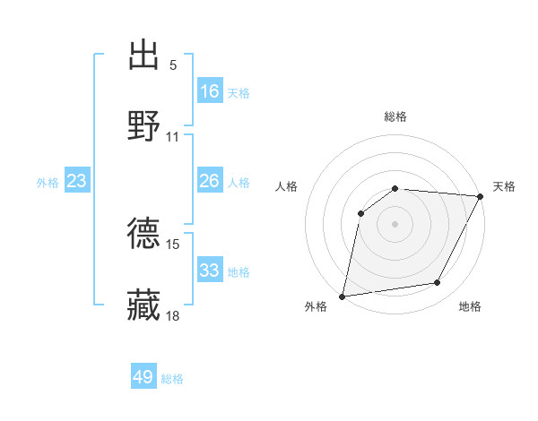 出野 德藏さんの総格は49画の2点!