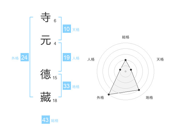 寺元 德藏さんを姓名の画数から五運を鑑定