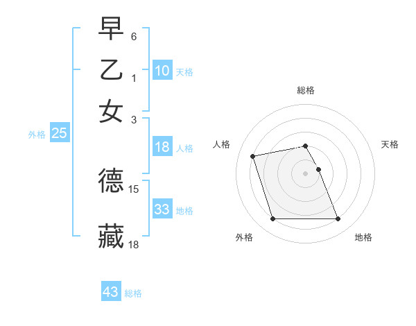 早乙女 德藏さんを姓名の画数から五運を鑑定