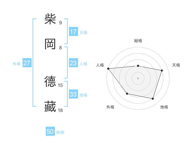 柴岡 德藏さんの総格は50画の2点!