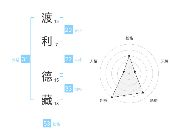 渡利 德藏さんを姓名の画数から五運を鑑定