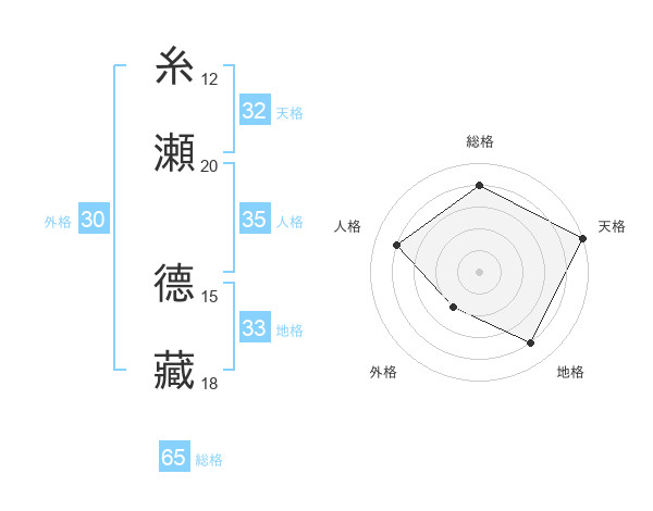 糸瀬 德藏さんの総格は65画の4点!