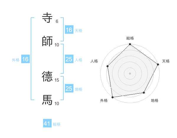 寺師 德馬さんを姓名の画数から五運を鑑定