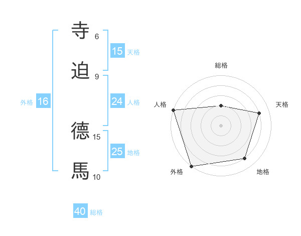寺迫 德馬さんを姓名の画数から五運を鑑定