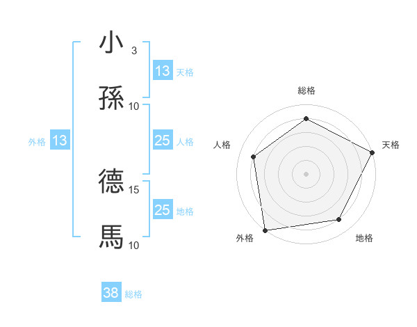 小孫 德馬さんを姓名の画数から五運を鑑定