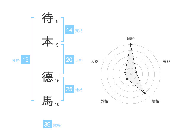 待本 德馬さんの総格は39画の5点!