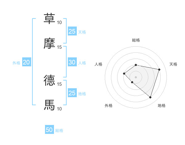 草摩 德馬さんを姓名の画数から五運を鑑定