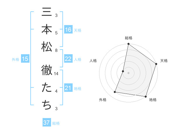 三本松 徹たちさんの総格は37画の5点!