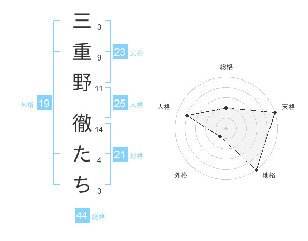 三重野 徹たちさんを姓名の画数から五運を鑑定