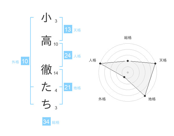 小高 徹たちさんの天格は13画の5点!