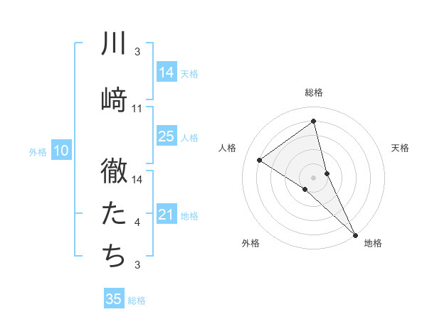 川﨑 徹たちさんの総格は35画の4点!