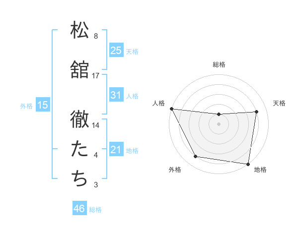 松舘 徹たちさんを姓名の画数から五運を鑑定