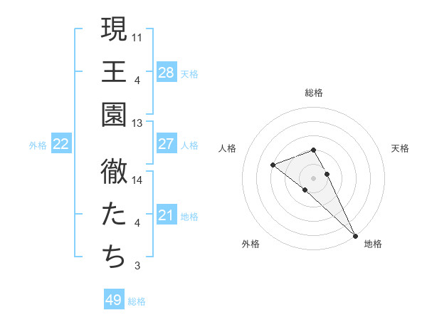 現王園 徹たちさんを姓名の画数から五運を鑑定