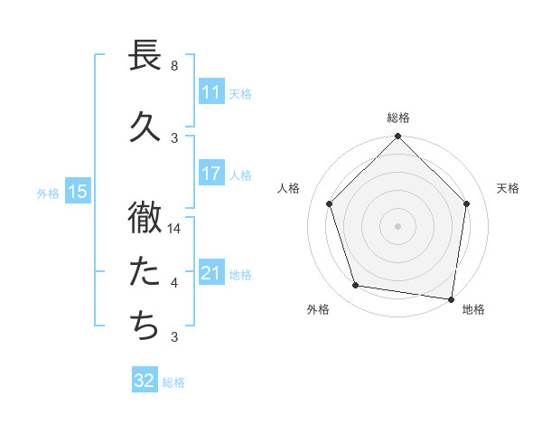 長久 徹たちさんを姓名の画数から五運を鑑定