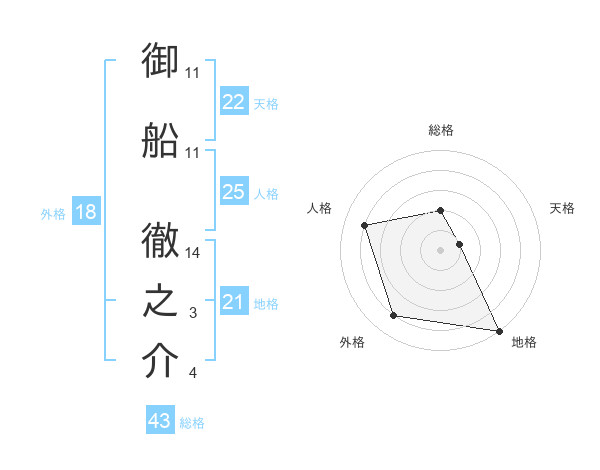 御船 徹之介さんを姓名の画数から五運を鑑定