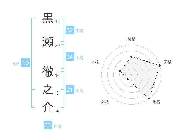 黒瀬 徹之介さんの総格は53画の3点!