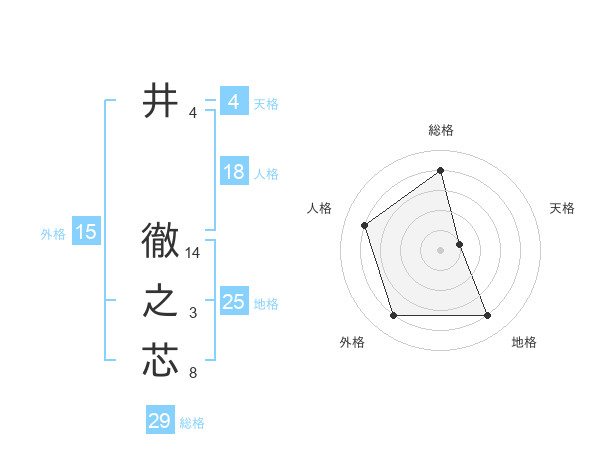 井 徹之芯さんを姓名の画数から五運を鑑定