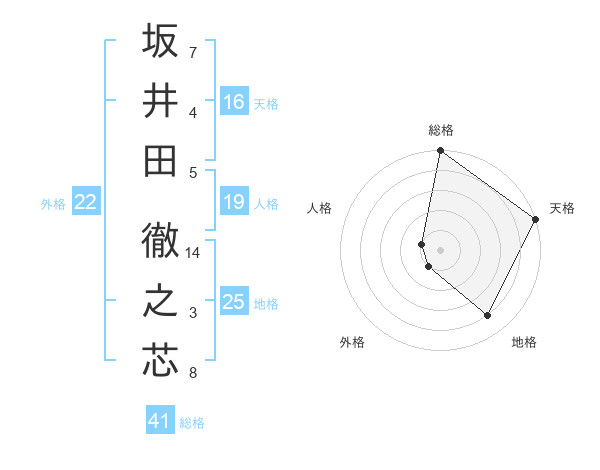 坂井田 徹之芯さんを姓名の画数から五運を鑑定