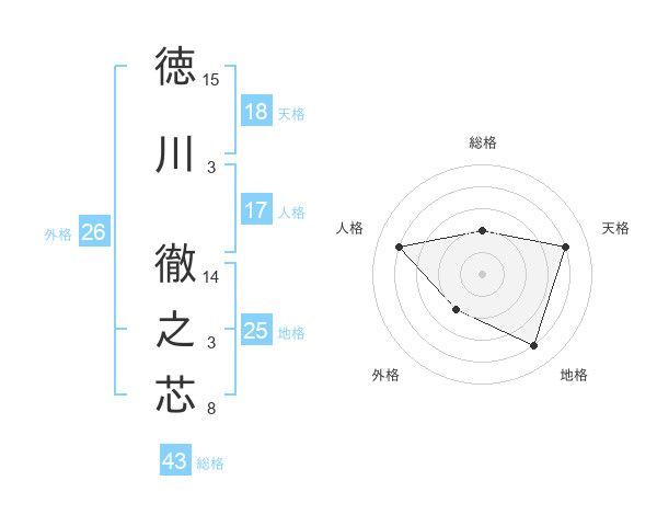 徳川 徹之芯さんを姓名の画数から五運を鑑定